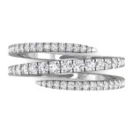 This opulent diamond statement ring is perfect for an evening out or a dinner party. The round shape diamonds are spiraled into three layers. The ring is made of 0.43 carats of lab grown diamonds in 18kt white gold.